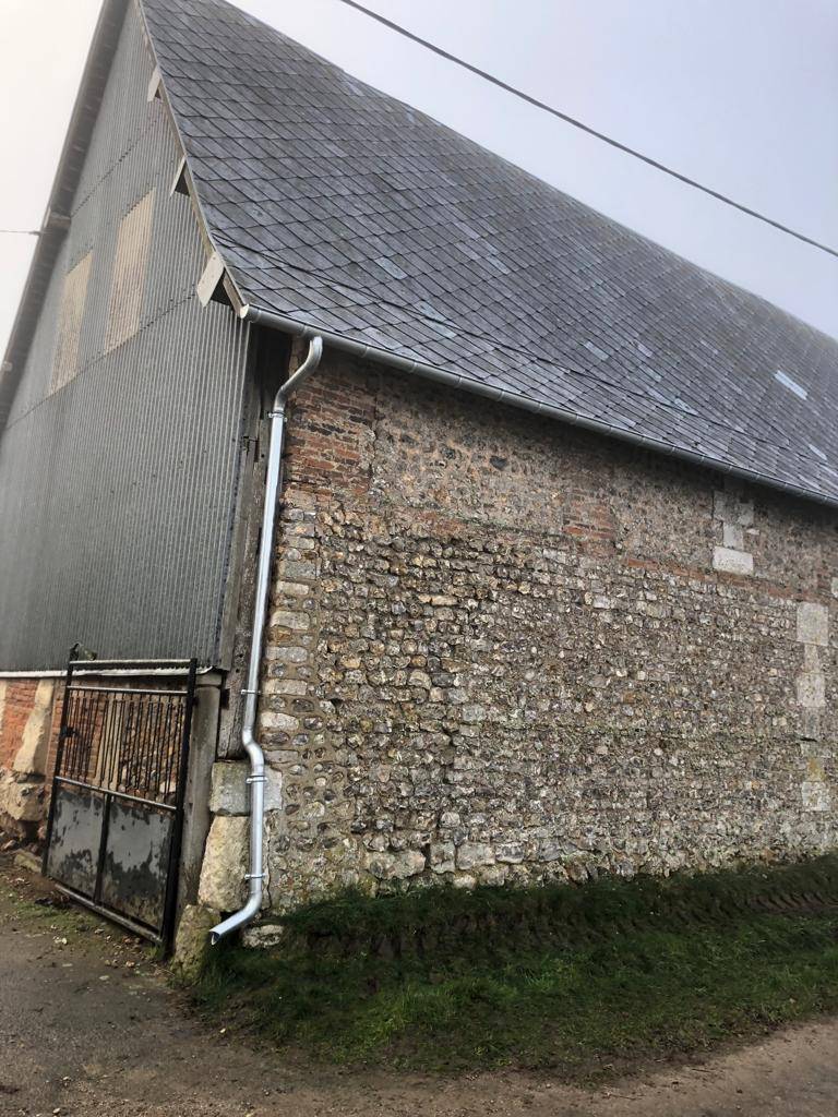 Spécialiste de la couverture depuis de nombreuses années, CMI Bâtiment est votre partenaire de confiance pour la remise à neuf de gouttières et de tuyaux de descente en zinc naturel, avec dépose de larmier en ardoise naturelle sur votre bâtiment agricole à Le Neubourg à Louviers.