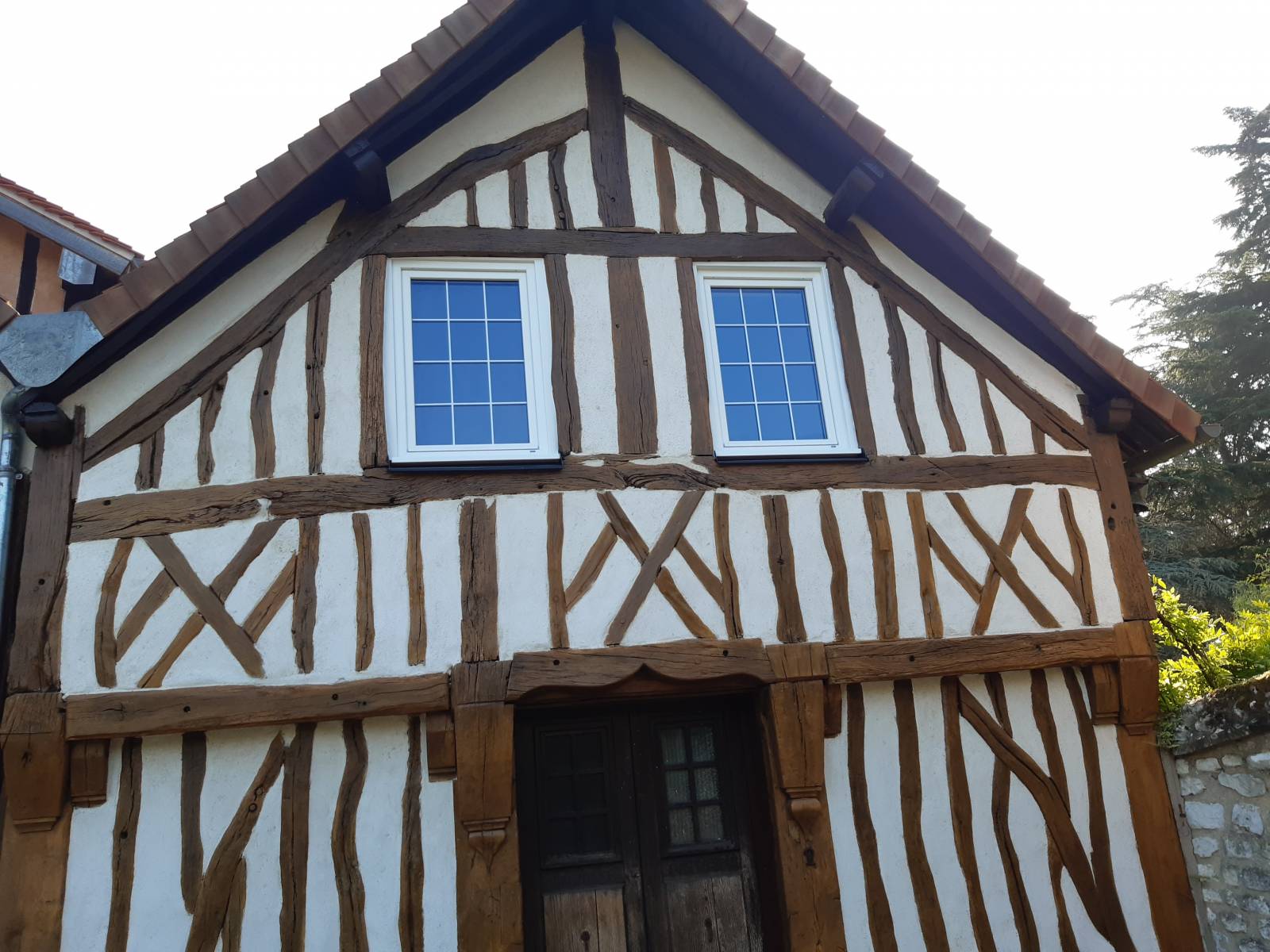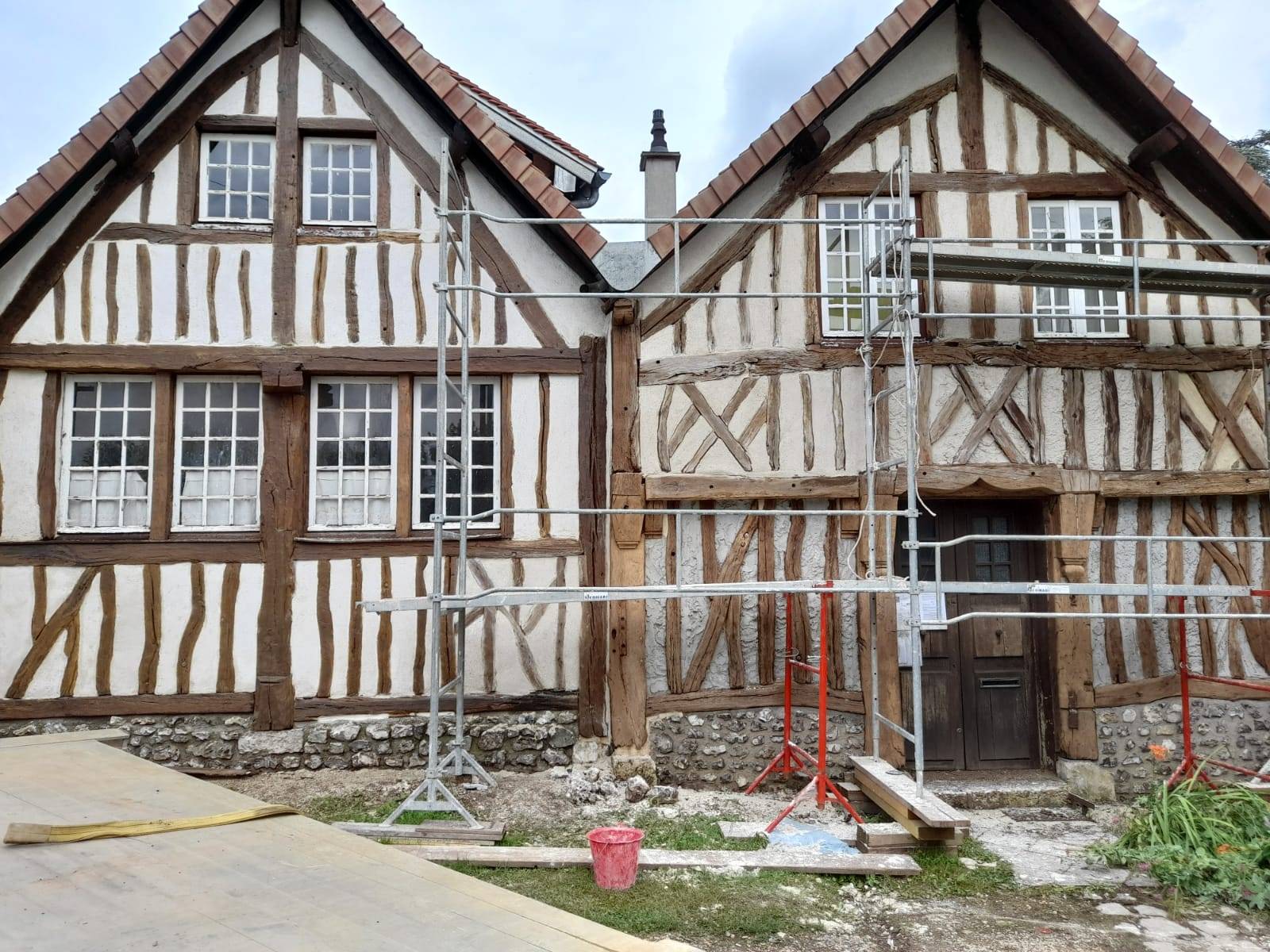 Rénovation de façade de maison normande avec colombage à Andé près de Louviers